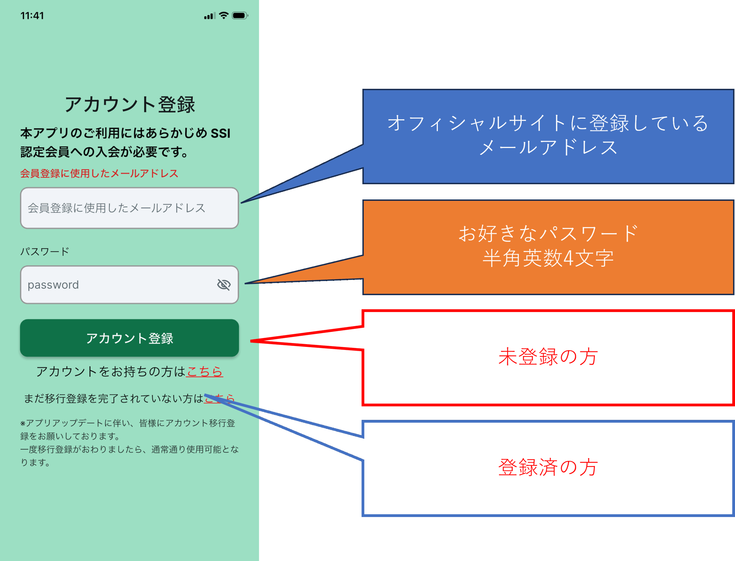 ※認定会員であっても、SSIオフィシャルサイトにメールアドレスのご登録が無い場合にはサインアップができません。本アプリのご利用を希望される際は、SSIオフィシャルサイトへのメールアドレスのご登録をお願い致します。