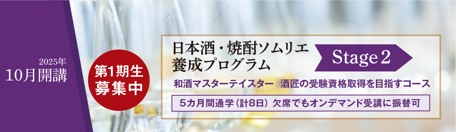 詳細は、日本酒・焼酎ソムリエ養成プログラム Stage 2 よりご確認ください。
