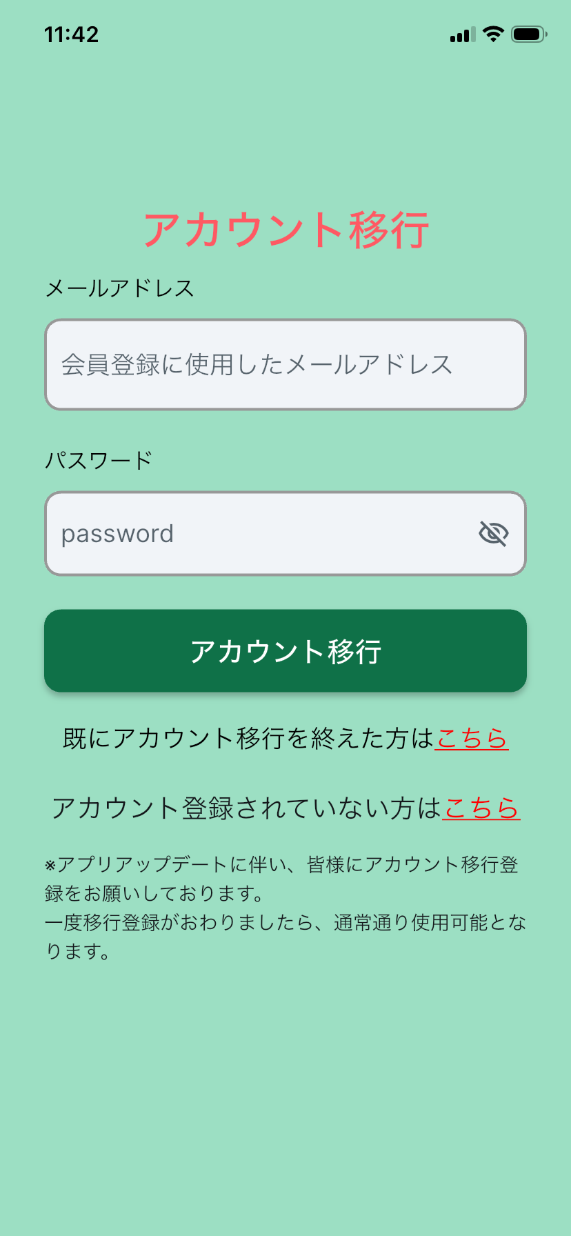 アップデート後は「アカウント移行画面」より、再度ログインをお願いいたします。