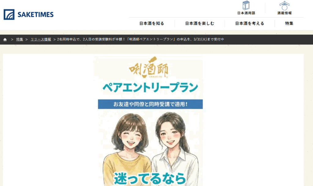 「唎酒師ペアエントリープラン」紹介されました!